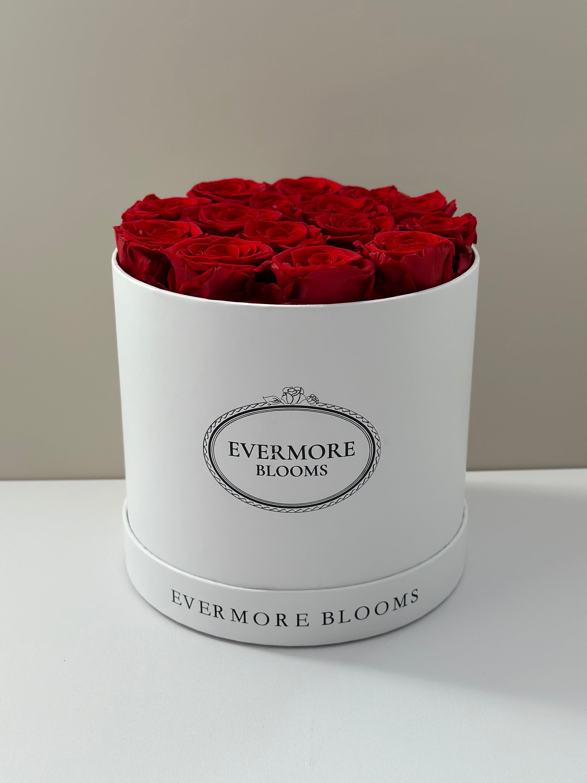 Our Medium Round Everlasting Rose Bouquet is a luxurious floral arrangement that consists of 15 premium everlasting roses set in a Parisian inspired Hat Box.